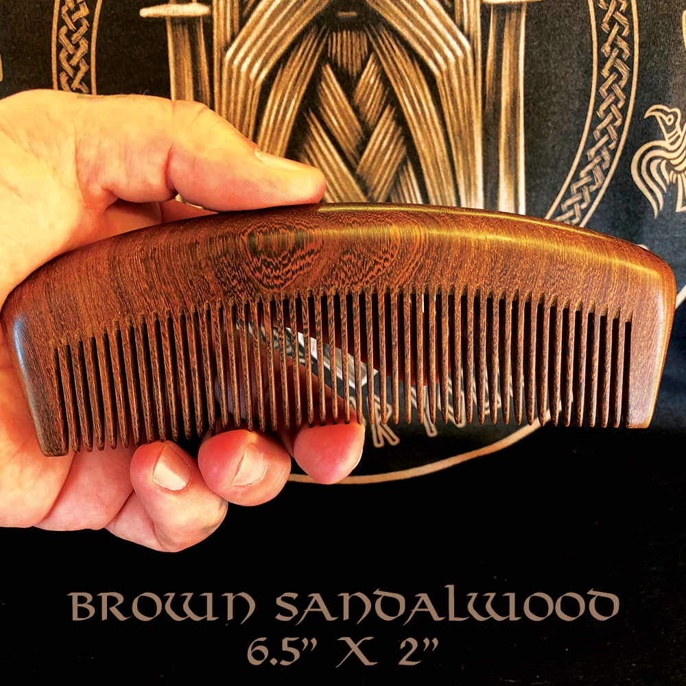 These beautiful brown sandalwood combs are hand made in the United States. These combs have naturally unique wood markings. No 2 combs are alike. The darkness of the wood will vary.