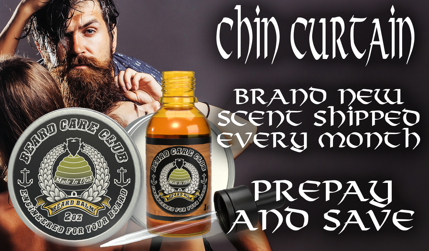 Chin Curtain: Every month we send our Chin Curtain box containing a 1oz beard oil and a 2oz beard balm OR 2oz beard cream in our Scent Of The Month. With your Chin Curtain subscription you will receive a new scent every month so you can stay fresh!