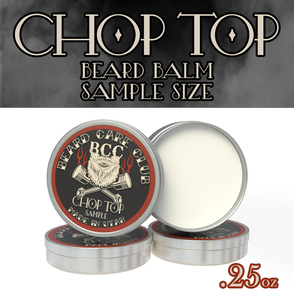 Keep your beard looking healthy and maintained with beard balm. Beard balm helps tame your beard giving it a finished look. Our balms are smooth not gritty, and offer the right amount of oils to ensure your beard doesn't look greasy. Our Chop Top Beard Balm contains high quality oils, butters, and beeswax to seal in the moisture while giving your beard the hold you desire.