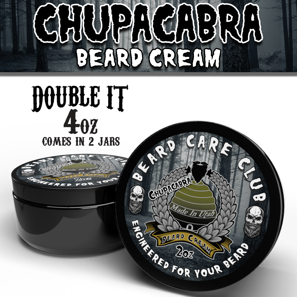 Our Chupacabra Beard Cream contains all natural ingredients to help condition and moisturize your beard as well as promote beard growth. Beard Creams also help keep the skin under your beard free of "beardruff", A.K.A beard dandruff, while leaving it itch free, soft, and manageable.