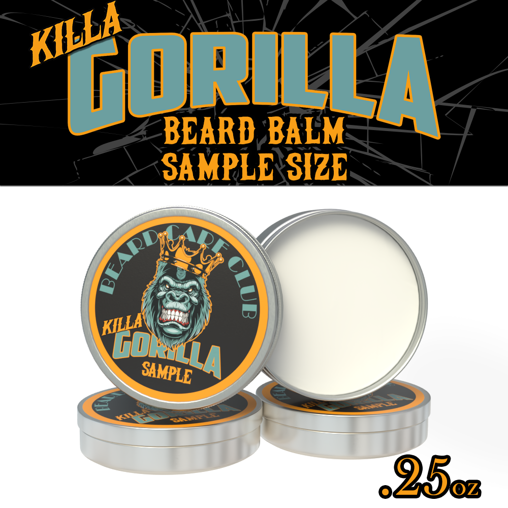 Keep your beard looking healthy and maintained with beard balm. Beard balm helps tame your beard giving it a finished look. Our balms are smooth not gritty, and offer the right amount of oils to ensure your beard doesn't look greasy. Our Killa Gorilla Beard Balm contains high quality oils, butters, and beeswax to seal in the moisture while giving your beard the hold you desire.