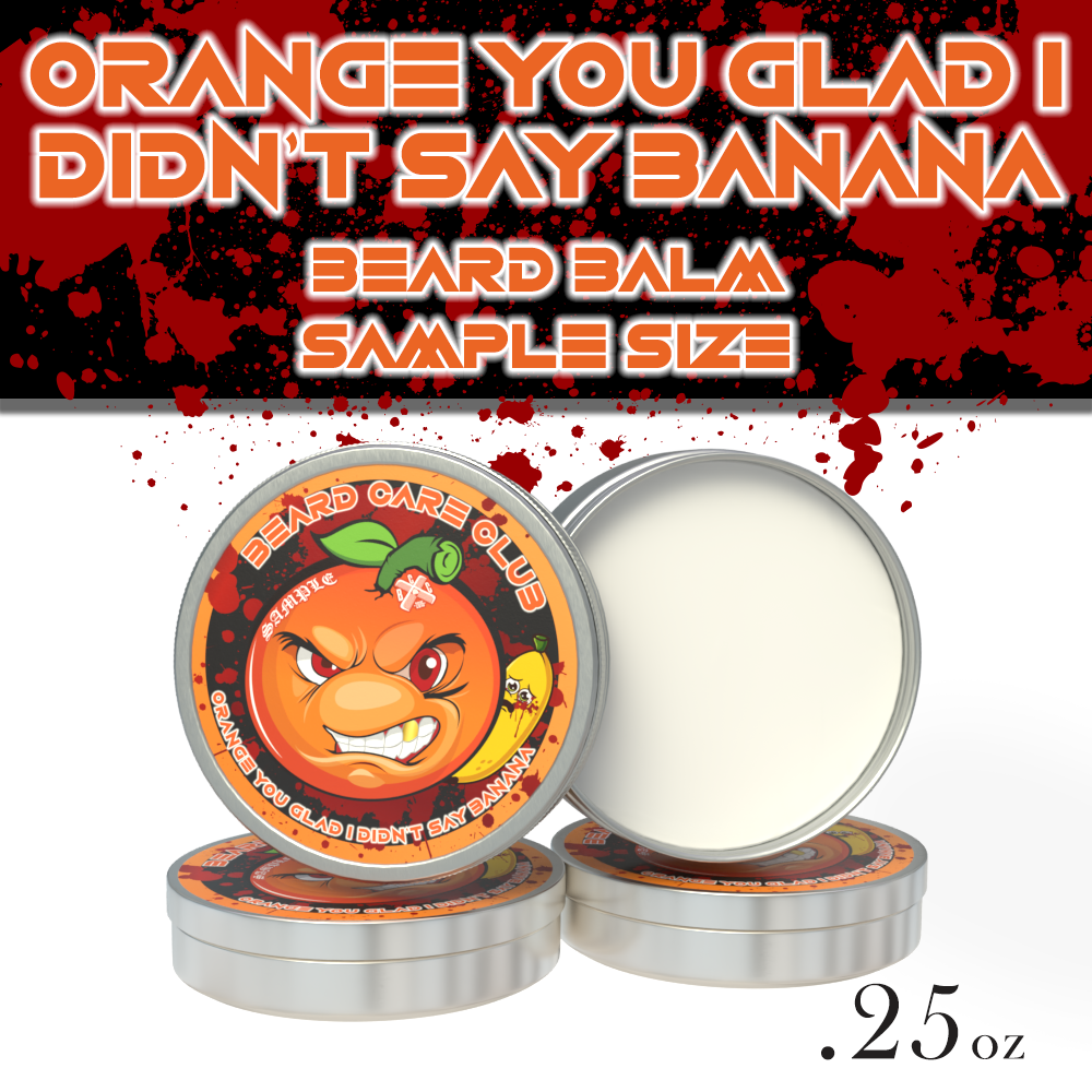Our 90th scent is called "Orange You Glad I Didn’t Say Banana": 90 scents! Can you believe it? Freaking 90 different scents? We get a lot of requests for an orange scent so here we are. But we couldn’t just do orange, that would be boring, so we added all sorts of dark essential oils to this to come up with a unique blend. As we were passing around the first bottle of “Orange You Glad” we made around the shop to come up with a name, Donny said “it’d be funny to call it orange you glad I didn’t say banana”. One of our employees, Melissa looked at him and said “oh please do, that would be awesome”. Then Sadie chimed in, “only if you add a beat up banana to the label”. It kind of turned in to a running joke, until the labels were printed. Donny did just that. He said, “it’s just funny, and this label and name make me laugh”. So here we are, we hope it makes you smile, more importantly we hope it makes your beard soft and manageable. Cheers and happy summer!