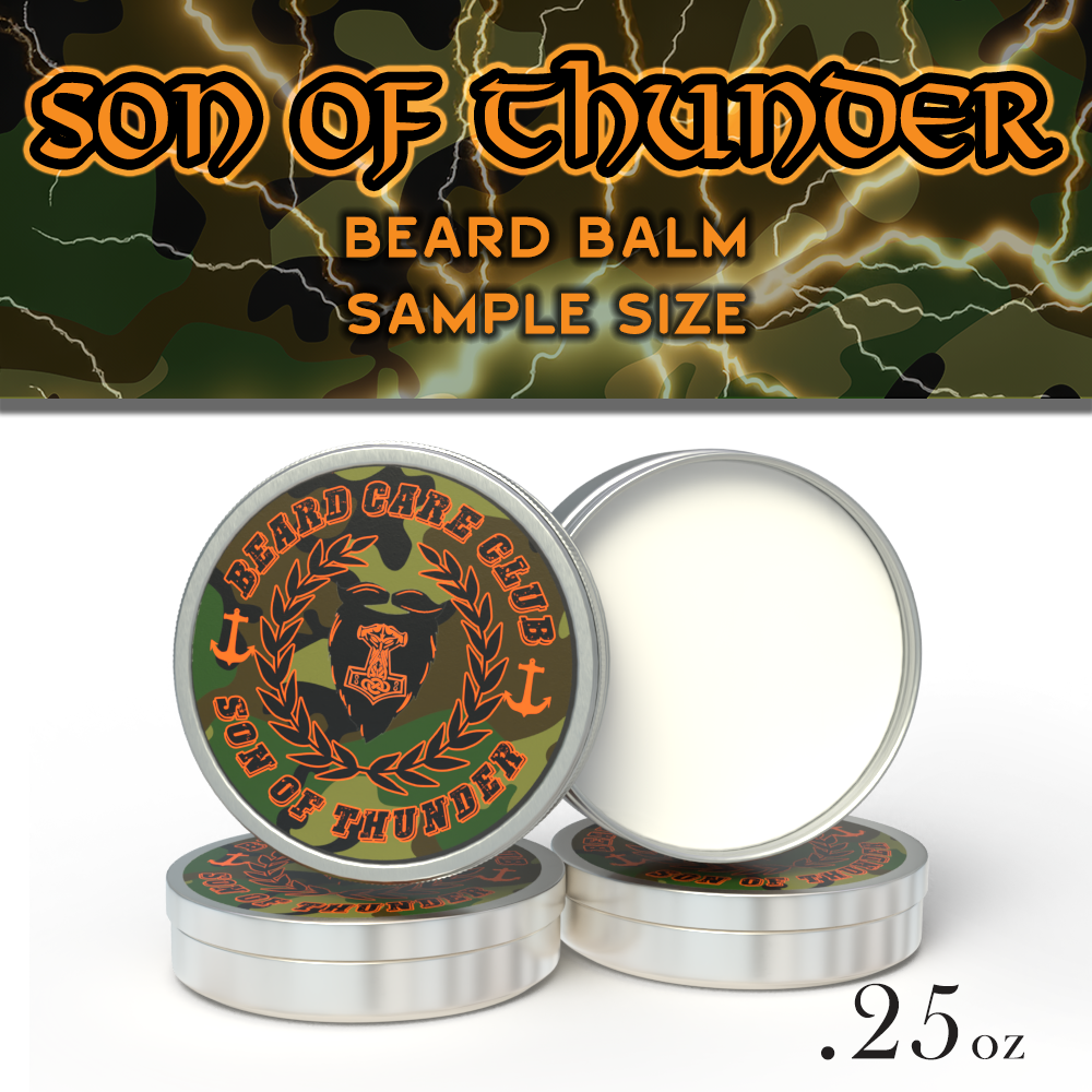 Keep your beard looking healthy and maintained with beard balm. Beard balm helps tame your beard giving it a finished look. Our balms are smooth not gritty, and offer the right amount of oils to ensure your beard doesn't look greasy. Our Son Of Thunder Beard Balm contains high quality oils, butters, and bees wax to seal in the moisture while giving your beard the hold you desire.
