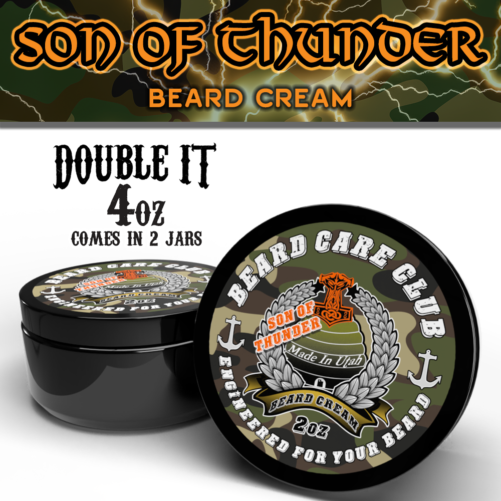 Our Son Of Thunder Beard Cream contains all natural ingredients to help condition and moisturize your beard as well as promote beard growth. Beard Creams also help keep the skin under your beard free of "beardruff", A.K.A beard dandruff, while leaving it itch free, soft, and manageable.