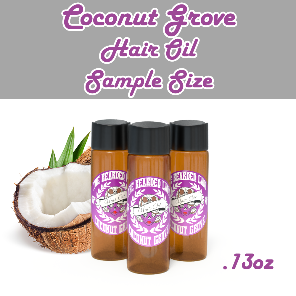 Coconut Grove Hair Oil is the perfect combination of coconut and vanilla. It's light and airy, without being overwhelming. Hair oil is a great way to protect your hair from damage caused by styling tools such as hair dryers, straighteners, curling irons, etc. The Bearded Lady Hair Oil contains 9 different carrier oils, which all provide their own benefits to your hair health including argan oil, jojoba oil, vitamin E oil, pumpkin seed oil, hemp seed oil, and more. Followed with just a touch of fragrance to give your hair the freshness and protection it needs.