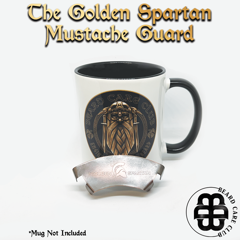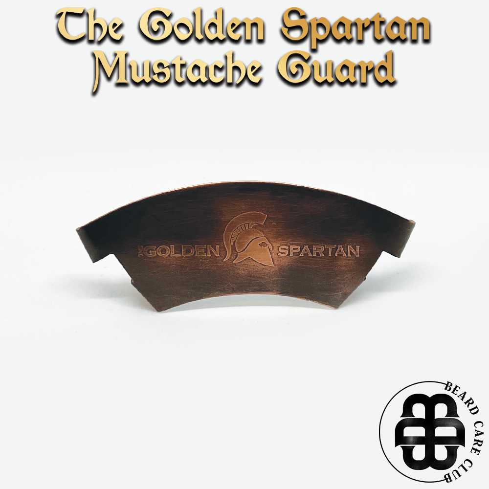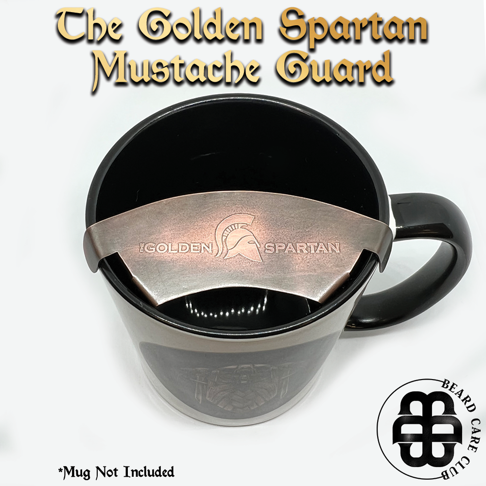 The Golden Spartan Mustache Guard is the solution for guarding your mustache from the beverages we consume. No more coffee stains on our pretty mustaches we take the time to groom. When it comes to mustache guards you will not find a more premium product. Made from 100% Copper, dressed with a timeless patina and coated with a non-toxic barrier, The Golden Spartan Mustache Guard has been handcrafted in Europe to perfection.