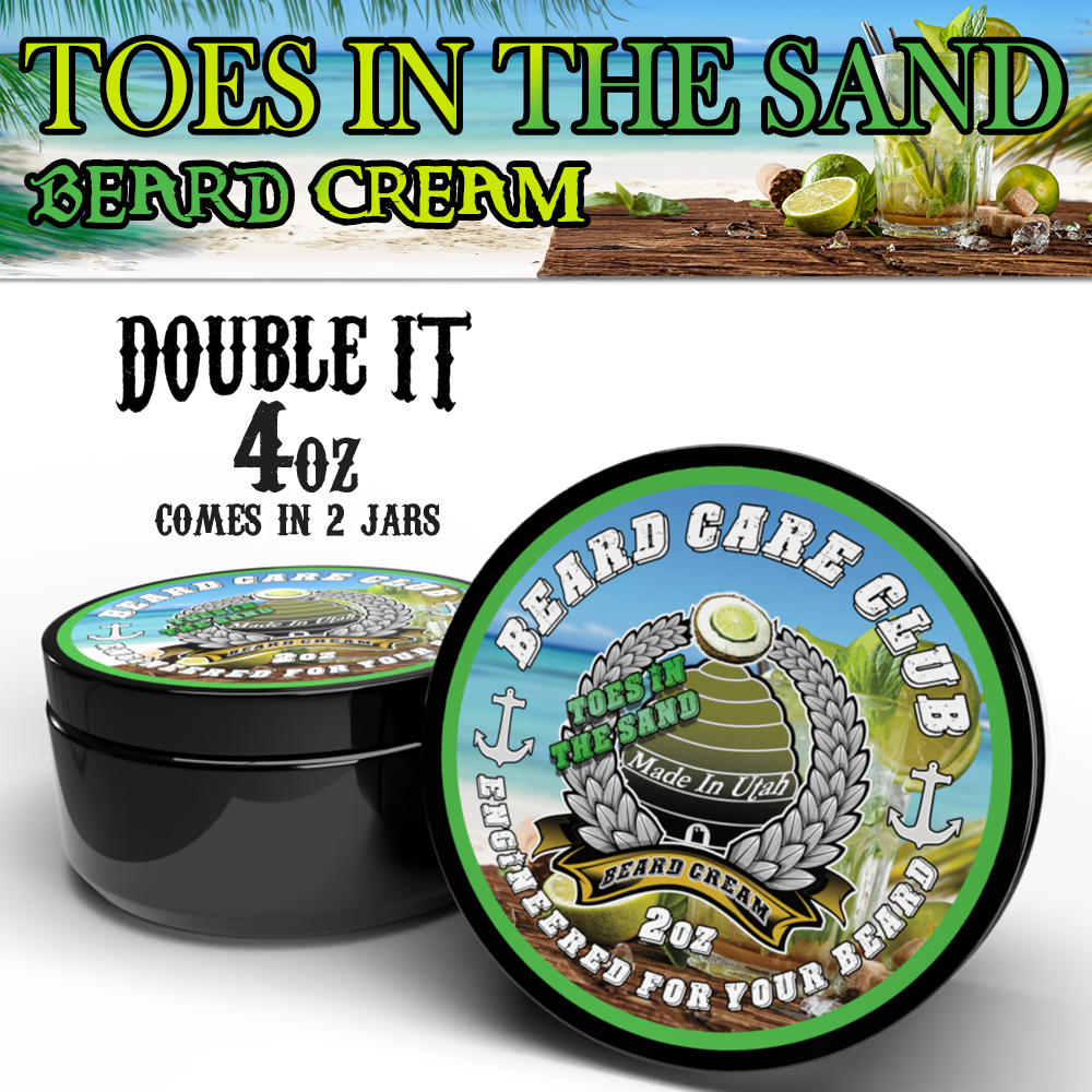 Our Toes In The Sand Beard Cream contains all natural ingredients to help condition and moisturize your beard as well as promote beard growth. Beard Creams also help keep the skin under your beard free of "beardruff", A.K.A beard dandruff, while leaving it itch free, soft, and manageable.